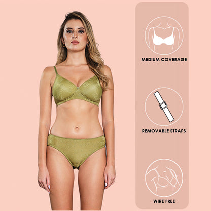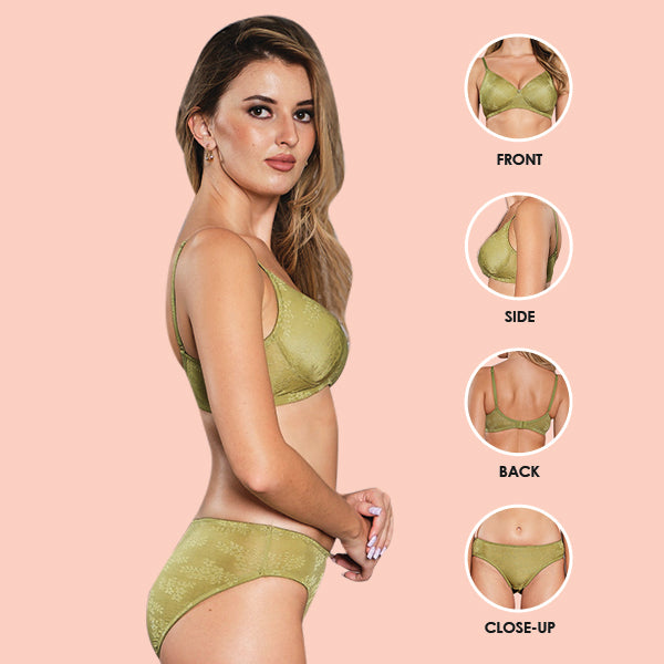 The Carolla Bridal Lingerie Set brings elegance and romance together in a stunning lace and jacquard design. Featuring a medium coverage, non wired lace bra and a matching low rise nylon jacquard panty, this set is crafted for both comfort and allure. With its soft fabric, delicate detailing, and flattering fit, Carolla is perfect for bridal moments, romantic evenings, or when you want to feel effortlessly sexy.