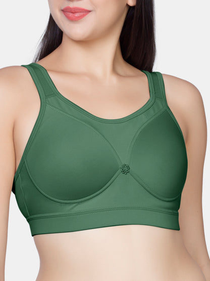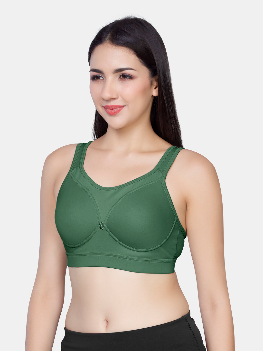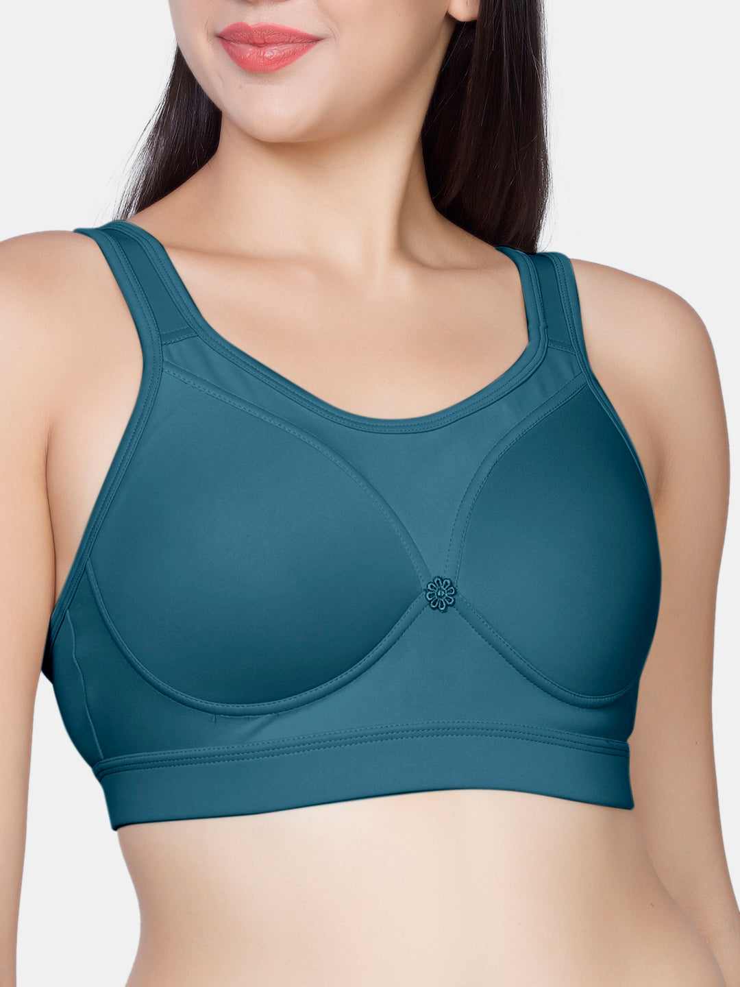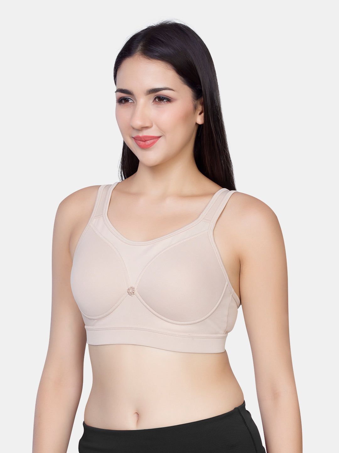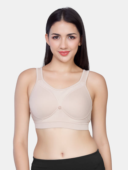 Full Coverage Padded Non Wired Polyester Sports Bra with Hook and Eye Closure - Accurate