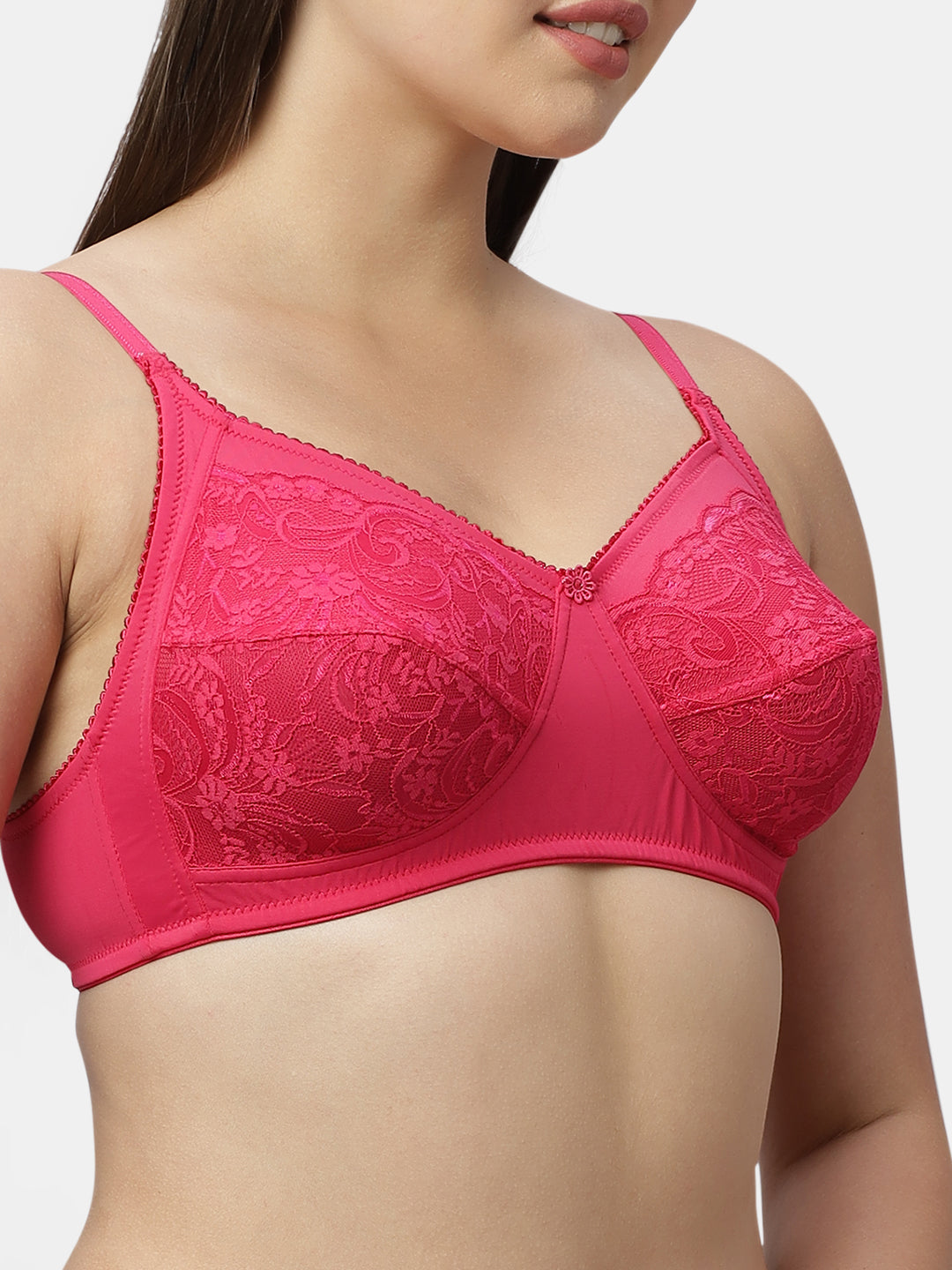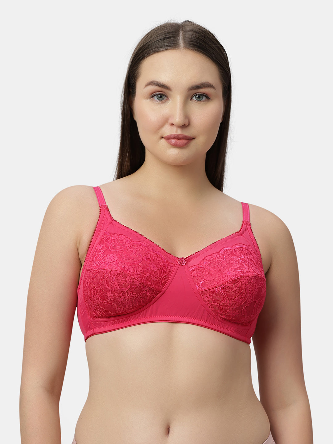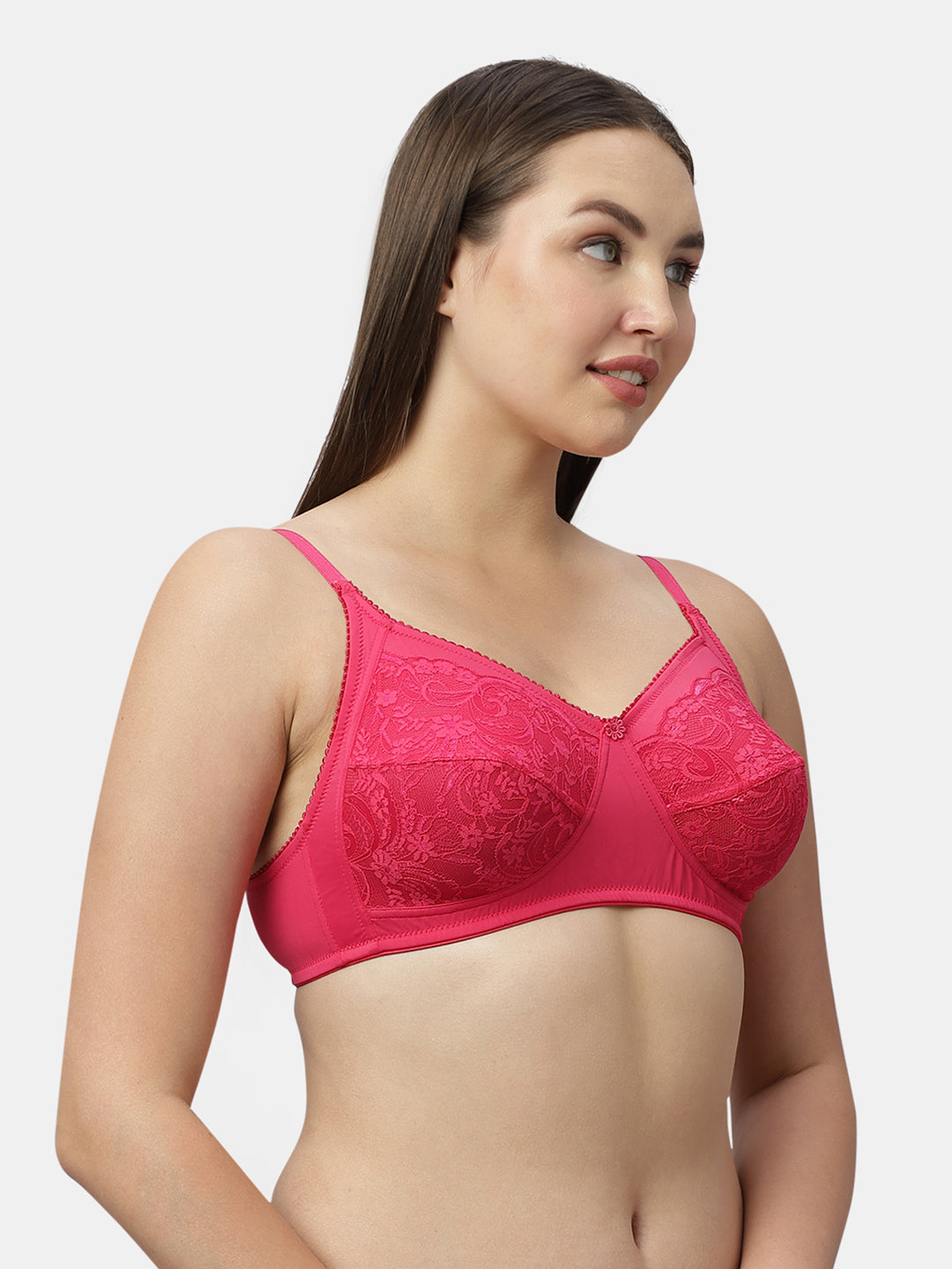 Medium Coverage Nylon Spandex Lace Fashion Bra | Non Padded Seamed Cups Wire Free Adjustable Straps - Nysh