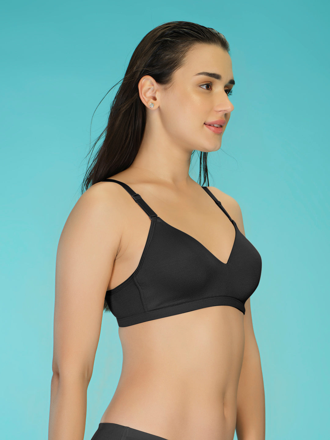 Padded Full Coverage Soft Modal Evryday Bra with Detachable Straps, Hook & Eye Closure - Lee