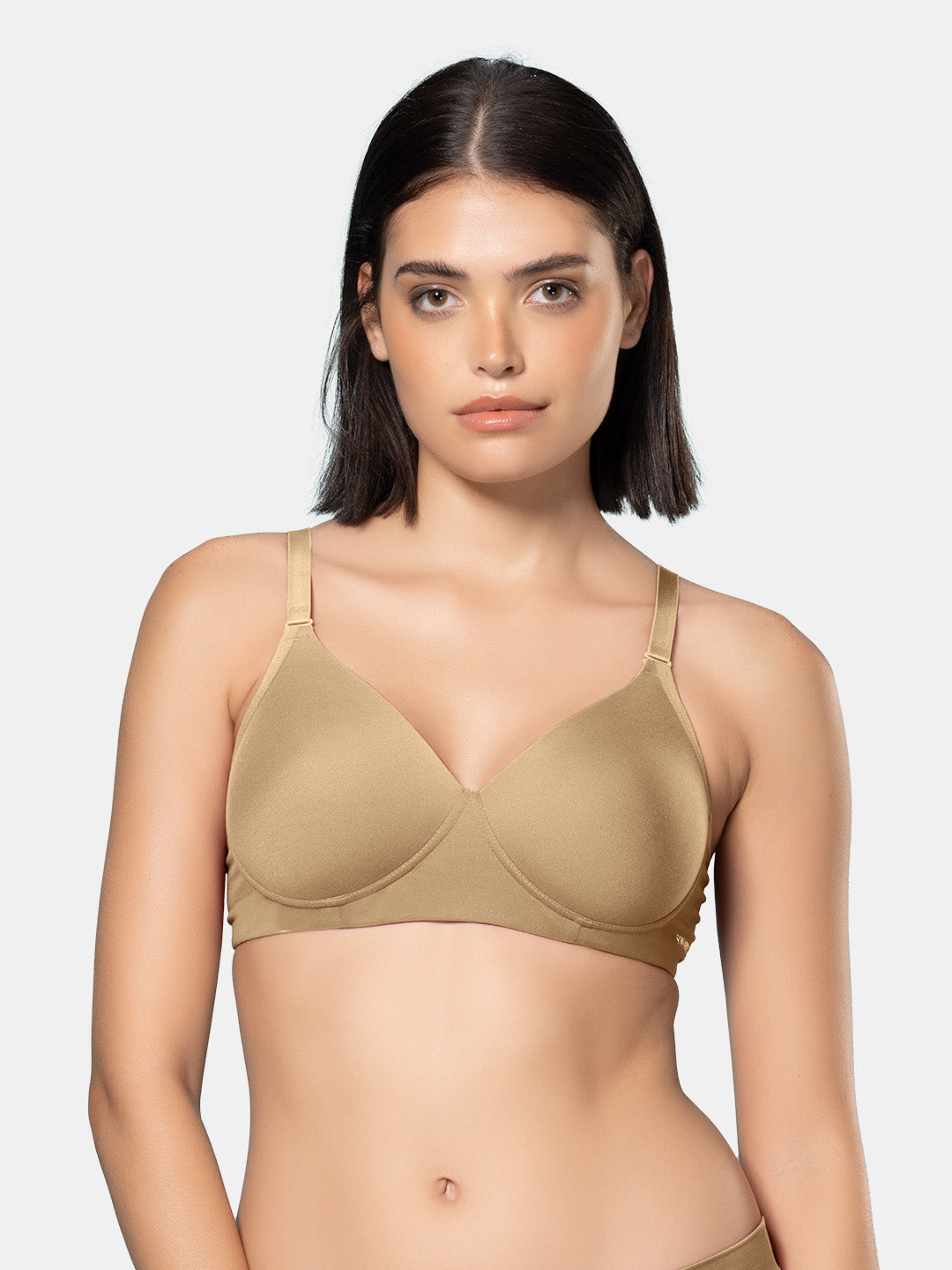 Padded Moulded Full Coverage Soft Microfiber Everyday T Shirt Bra with Smooth V Neckline, Adjustable Straps, Hook & Eye Closure – Biana