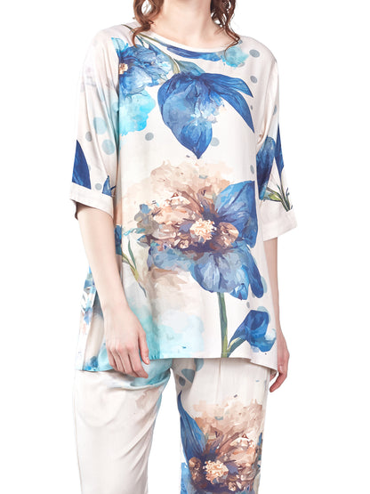 ● Kurti-style top features a round neckline, 3/4th sleeves, and a regular fit for everyday comfort