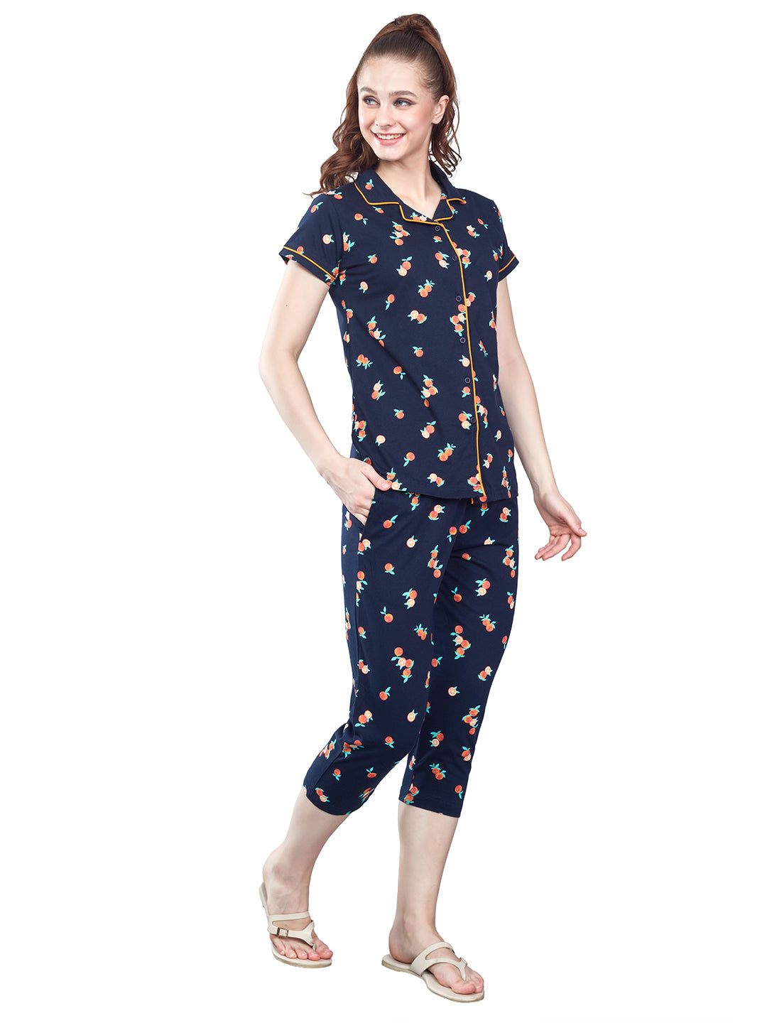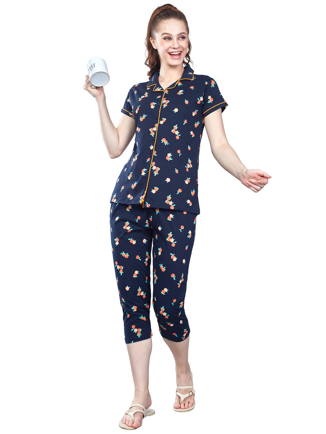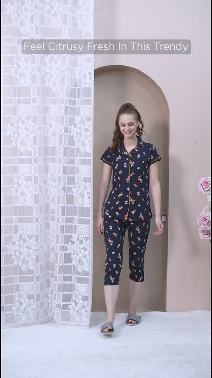 ● Fruit printed shirt & pyjama night suit crafted for a playful, breezy vibe