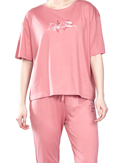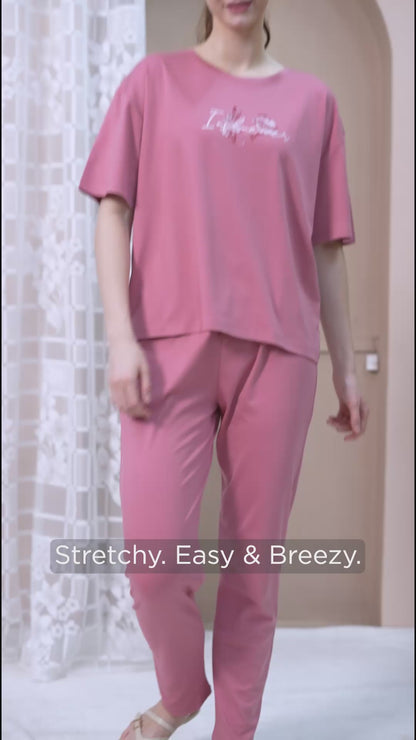 ● Graphic print oversized T-shirt & pyjama set made for ultimate laid-back comfort
