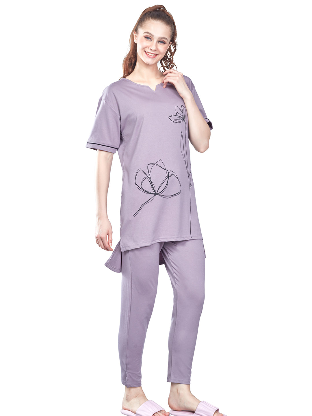 ● Kurti-style top features a chest print, half sleeves, and a functional side pocket